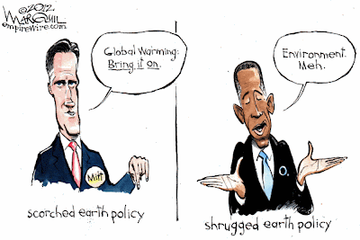 La posición republicana de Romney es aún peor. Su única referencia a lo ambiental, durante el pasado debate, fue afirmar que Obama había gastado recursos públicos excesivos apoyando la generación de fuentes de energía alternativas y que estos recursos deberían reorientarse para alcanzar la independencia energética de los Estados Unidos. Con los republicanos, el tema ambiental será aún menos relevante y sus inversiones tendrán como prioridad el apoyo a actividades que generen resultados de corto plazo, así tengan efectos ambientales negativos.