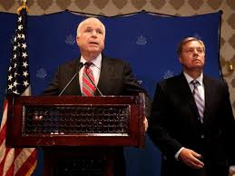 ويبدو أن ماكين وزميله غراهام قد جاءا إلى القاهرة وبكل هذه السرعة، بينما كان بيرنز يقوم بمهمته في العاصمة المصرية بهدوء وبدون إستعراضات ولا قذف الجمر المتَّقد في كل إتجاه، للتخريب على الديموقراطيين ولإظهار عجز الرئيس باراك أوباما وإدارته عن حلِّ أيٍّ من الأزمات المتفجرة في الشرق الأوسط من الأزمة العراقية إلى الأزمة السورية إلى الأزمة المصرية إلى الأزمة الفسطينية-الإسرائيلية وبالطبع إلى الأزمة الليبية والتونسية واليمنية والحقيقة أن هذا واضح كل الوضوح وأنَّ ماكين قد جاء ليسدد حساباته القديمة مع الحزب الديموقراطي على ضفاف النيل وأنه جاء للتخريب ولدفع مصر نحو هاوية كالهاوية التي سقطت فيها سوريا.